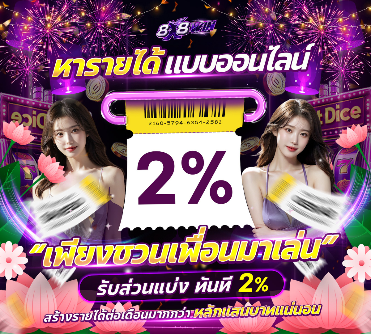 ชวนเพื่อนมาเล่นกับ 8X8WIN รับส่วนแบ่งทันที 2%